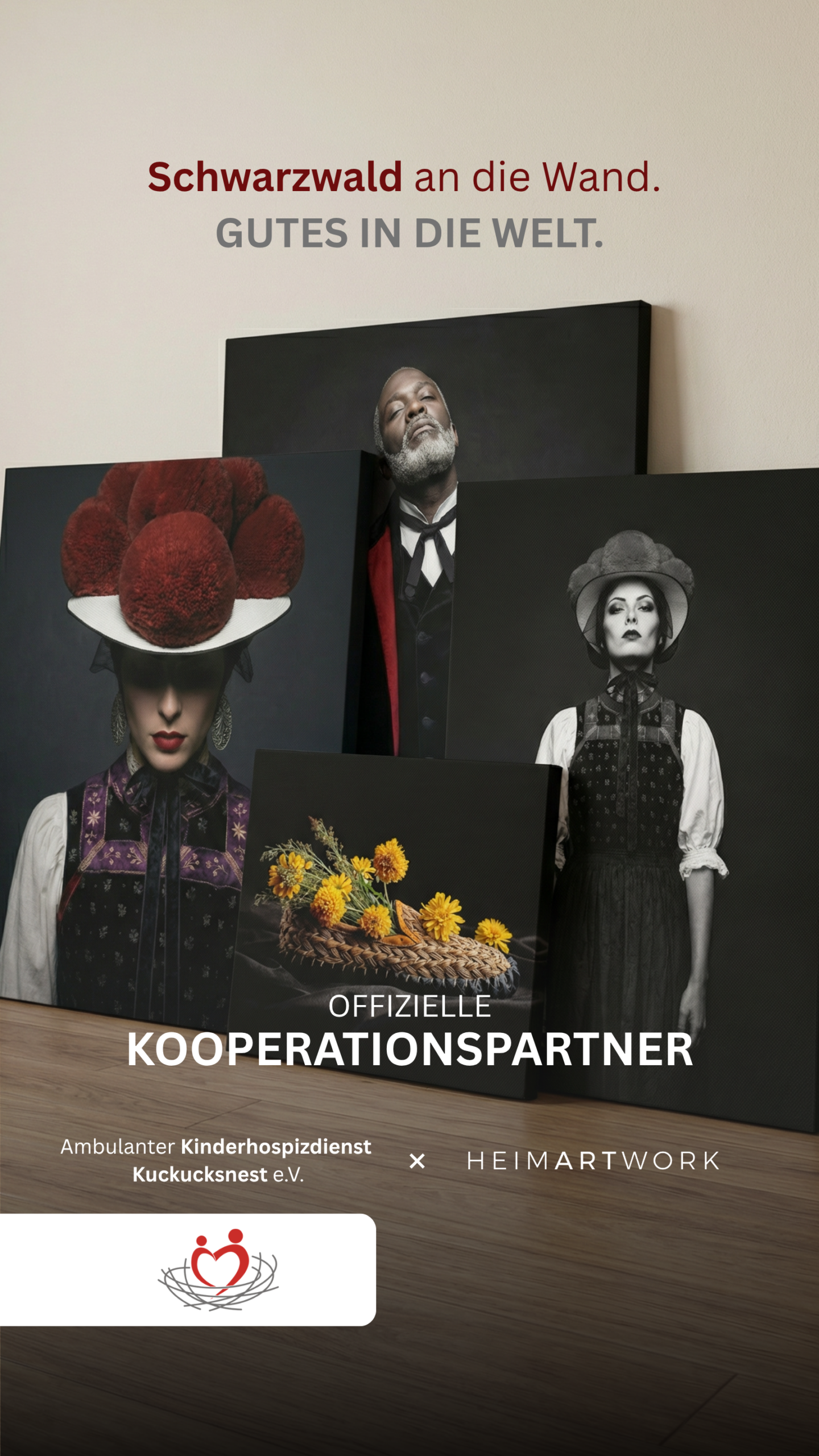 Neue Kooperation: HEIMARTWORK unterstützt Kuckucksnest e.V.Ab April 2026 verbindet eine offizielle Partnerschaft den Schwarzwald-Wandbildshop HEIMARTWORK mit unserem ambulanten Kinderhospizdienst – und macht jeden Kauf zu einem direkten Beitrag für unseren Verein.